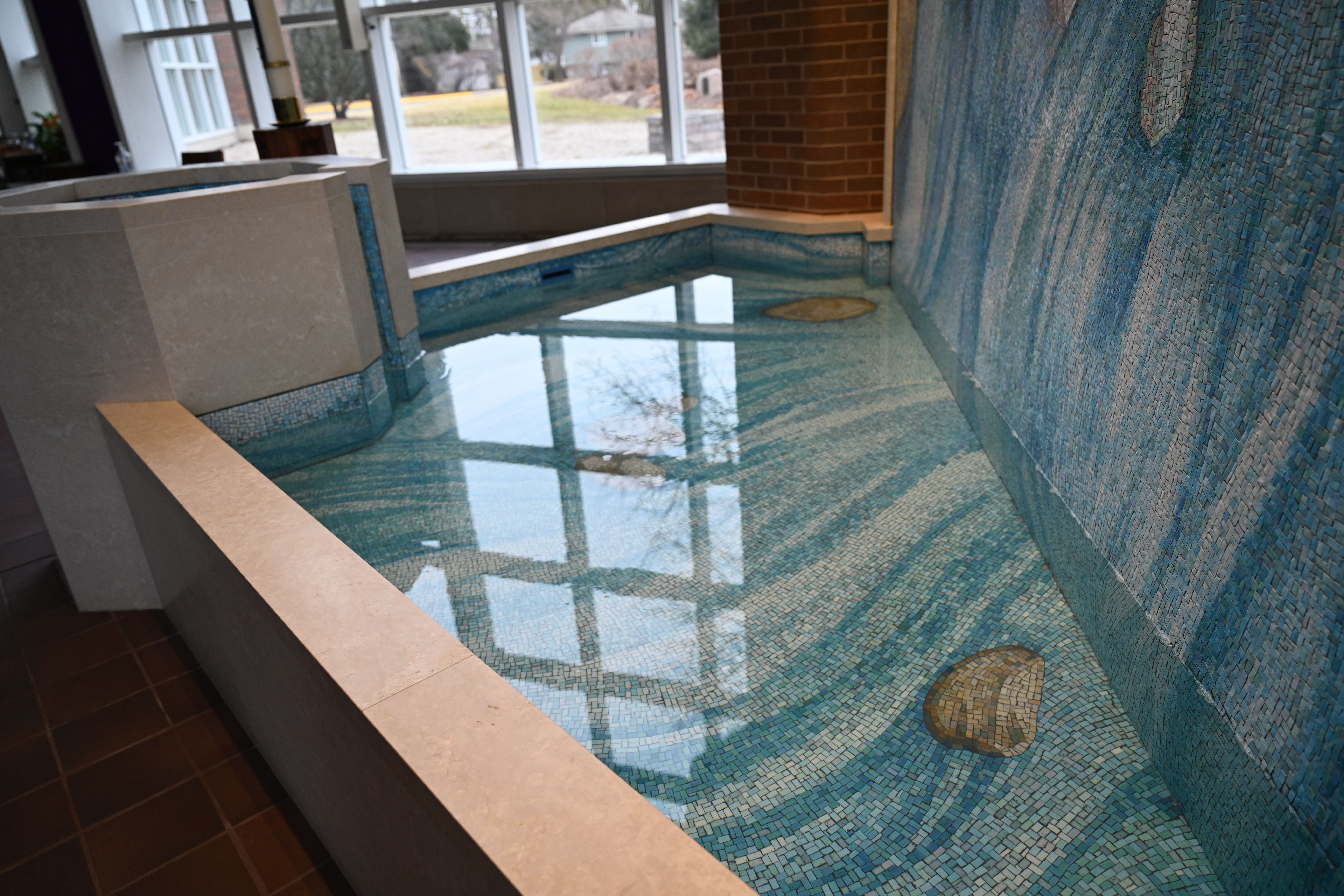 Venetian Glass Mosaic and Botticino Marble