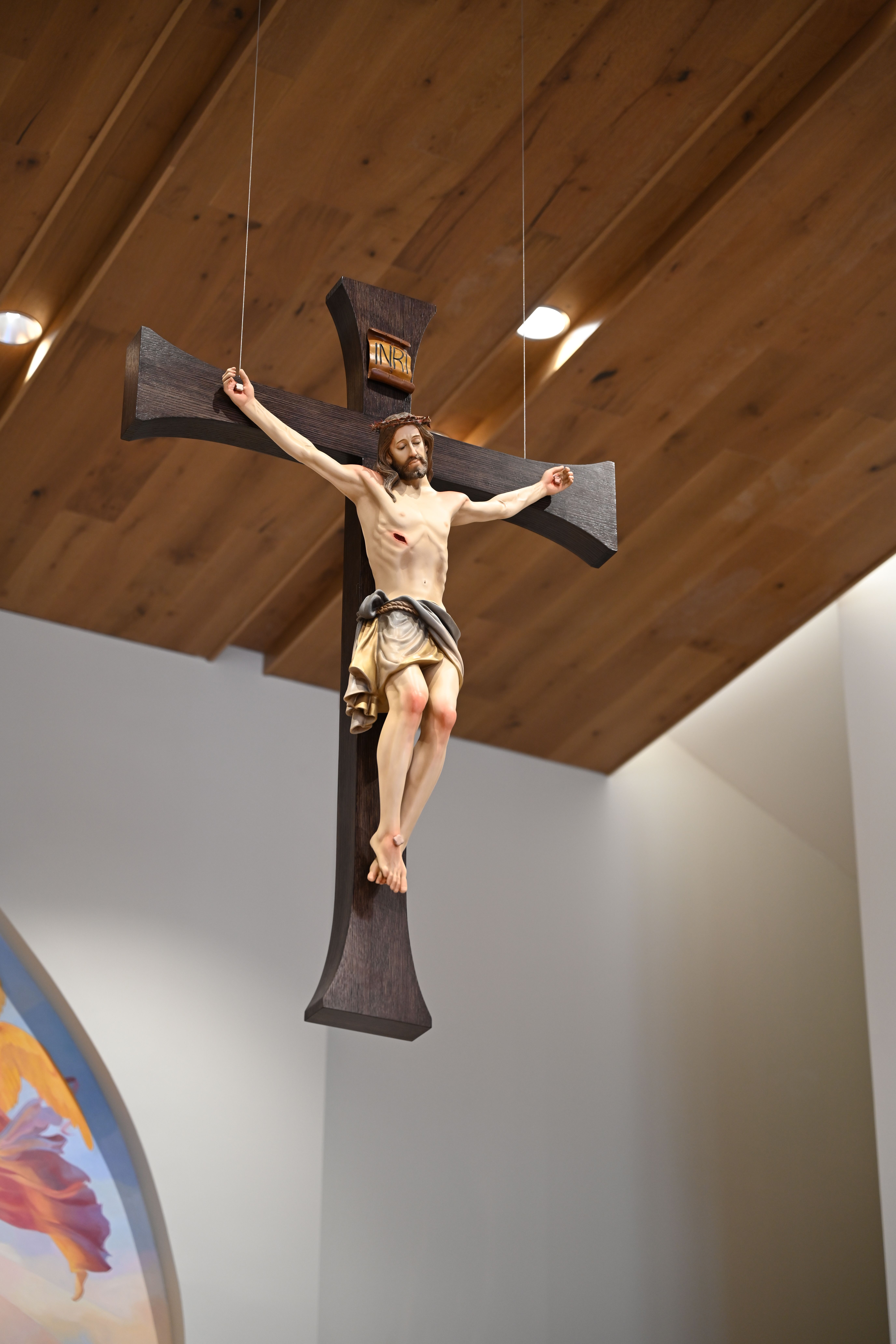 3' Corpus and 5' Cross - Polychrome finish fiberglass and oak wood