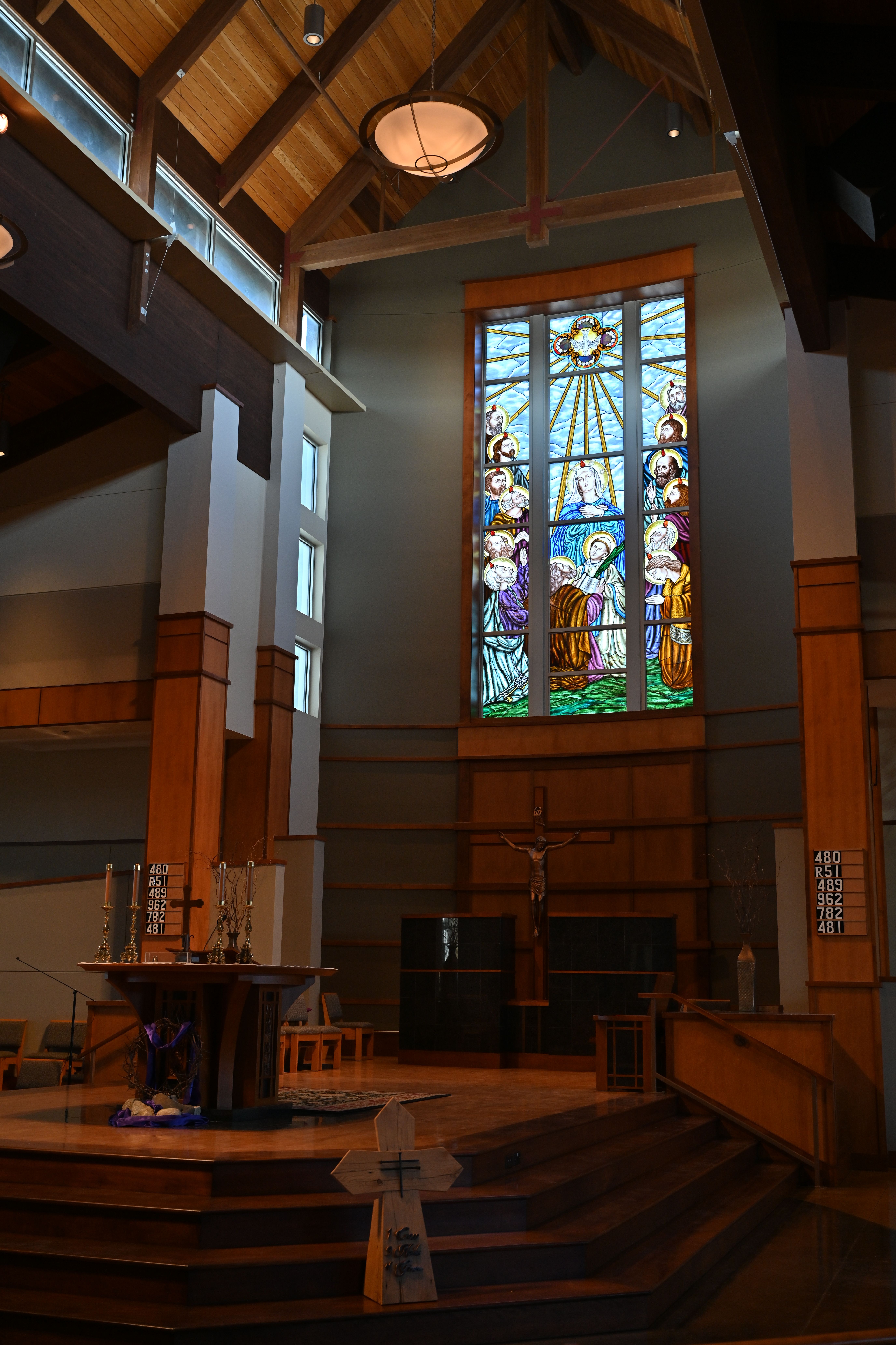 This Pentecost window for St. Stephen Catholic Church in Oak Creek was shaped through a careful and thoughtful design process, attentive both to theological clarity and artistic restraint. Fr. Stephen’s direction emphasized a unified visual language, drawing from the quieter Renaissance palette found in Spanish masters such as Juan de Juanes and Maino. The composition seeks to balance clarity and movement, allowing the scene to unfold with a sense of ordered dynamism appropriate to Pentecost, while maintaining harmony across the whole.