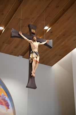 3' Corpus and 5' Cross - Polychrome finish fiberglass and oak wood